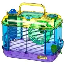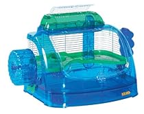 Spacious easy-view habitat with two levels of space for all hamsters gerbils and mice. Oversized clear-view door allows for easy interaction with pet. Removable petting zone acts as a travel carrier and resting location. Pre-assembled for quick set-up. Includes quiet exercise wheel water bottle and food dish. Create a dream environment with expandability ports. Easy to clean construction. Kabob hook locations. Super protect technology built into all interior surfaces to provide a healthier habitat. Comes complete with water bottle and food dish removable petting zone and exercise wheel.