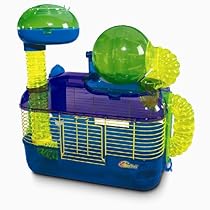 Run-about habitat for all hamsters gerbils and mice. A removable exercise ball provides hours of pet activity. The look-out tower doubles as a nesting location. The removable petting zone allows for easy interaction and is a safe resting location. Create a dream environment with expandability ports that allow connectible accessories to be added. Easy to clean construction with deep base. Well ventilated environment. Includes water bottle and food dish. Super protect technology built into all interior surfaces to provide a healthier habitat.
